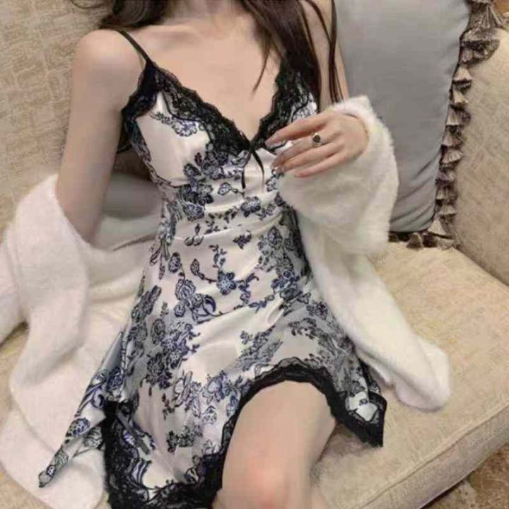 7.8清电商仓回收221件纯欲风碎花蕾丝边冰丝吊带睡裙女...