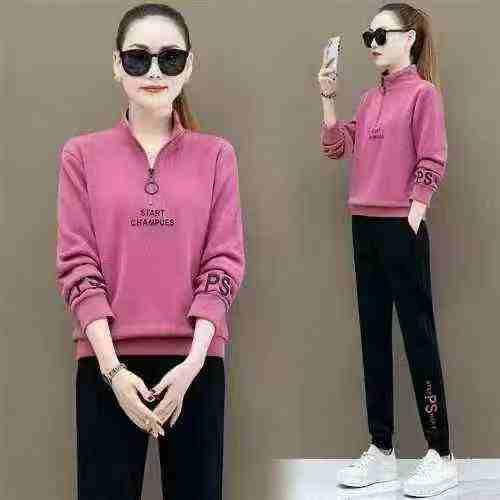 春秋季新款立领宽松长袖女休闲运动套装韩版大码卫衣两件套运动服,数量376...