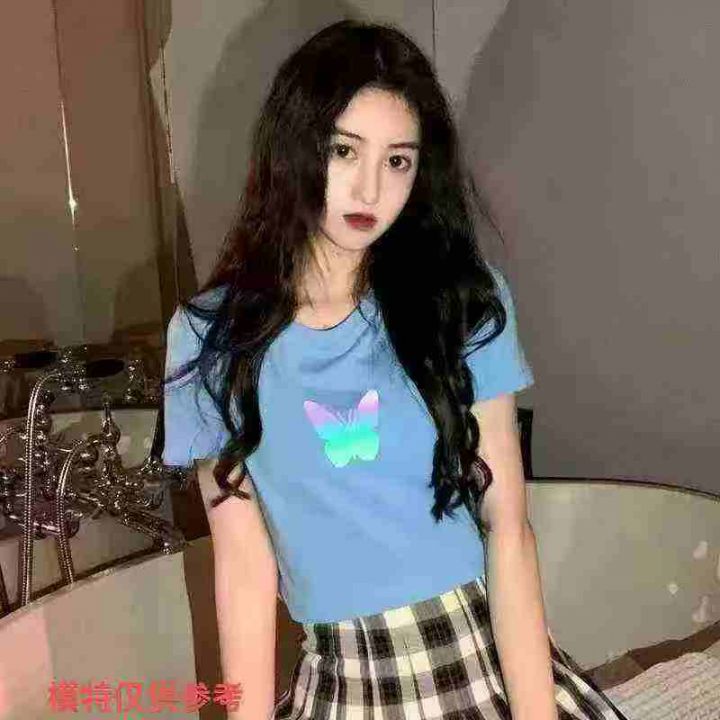 全清价5.9元蝴蝶短袖T恤女短款露脐上衣设计感小众辣妹...