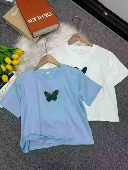 蝴蝶短袖T恤女短款露脐上衣设计感小众辣妹上衣,独立包装,码数1-4码,数量428件,分货加1,货号0912#35