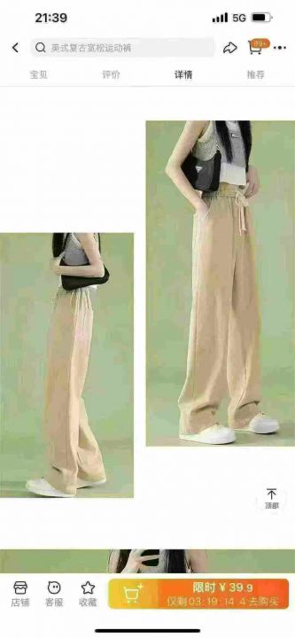全清7.9美式复古运动裤女2025年新款显瘦阔腿宽松直筒...
