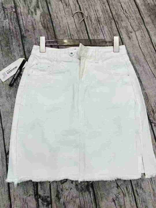 公司单好面料☕️白色牛仔短裙200条全清8.8 码数S到XXL,正品独立包装吊牌 ,高腰侧开叉牛仔半身裙女夏季新款显瘦a字辣妹包臀裤裙短裙子