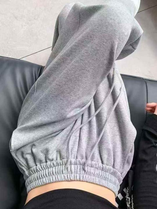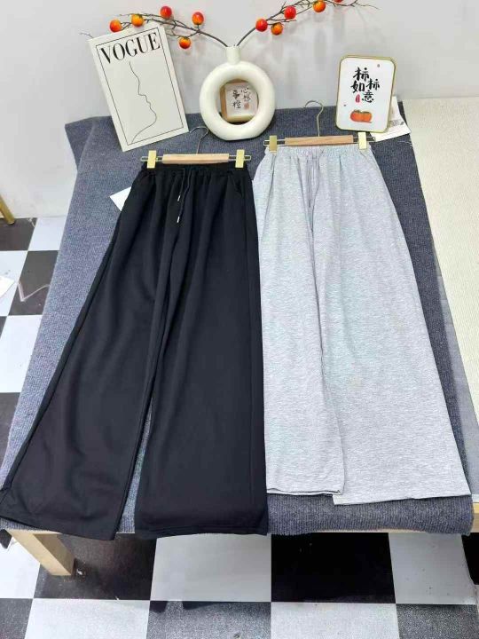 棉质运动裤女新款垂感休闲直筒春秋窄版松紧阔腿裤,数量408,码数s-2xl,独立包装,全清6.8元。 货号:1303