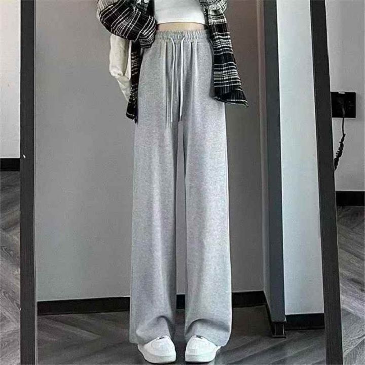 棉质运动裤女新款垂感休闲直筒春秋窄版松紧阔腿裤,数...