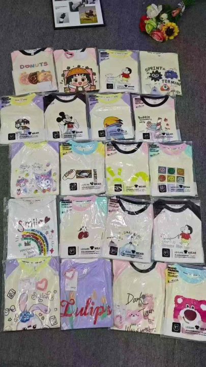 天猫仓回收650件卡通可爱插肩袖儿童纯棉短袖T恤,码数90-150。纯棉面料柔软舒适,版型质量都特别好,货品超好,带纸板独立包装。。 货号:1323