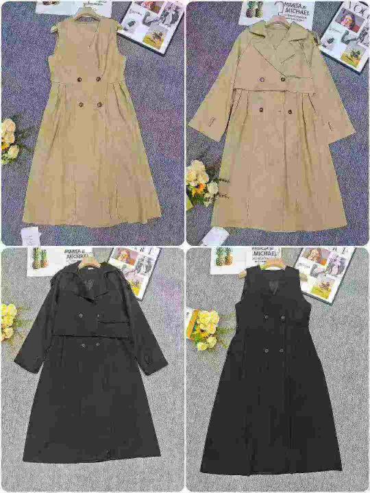 天猫仓回收73套温柔韩系成熟风优雅气质女士风衣连衣裙套装,码数L-4XL。两件套版型质量都很好,裙子有口袋,有独立包装。超低价秒杀!。 货号:1323