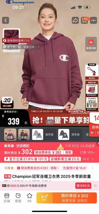 潮牌冠军卫衣 款式多 码数S-XL,401件。 货号...