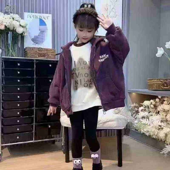 女童加绒外套春秋季薄款时髦洋气中大童装连帽拉链开衫...