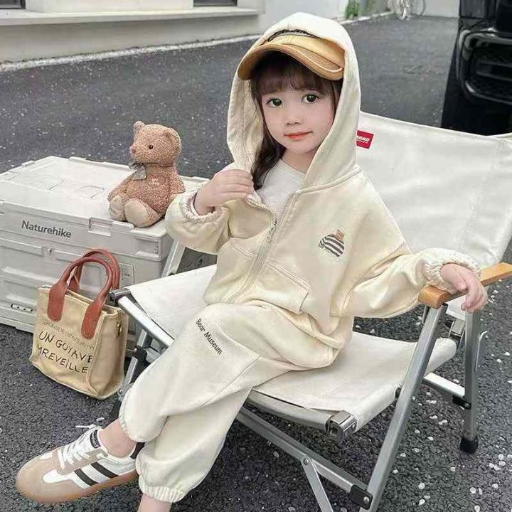 米妮哈鲁女童春秋季韩系卫衣套装2025新款女大童洋气上衣卫裤两件,其中连帽米色10套,数量130套,码数110-160,独立包装后领包边,全清10.8元