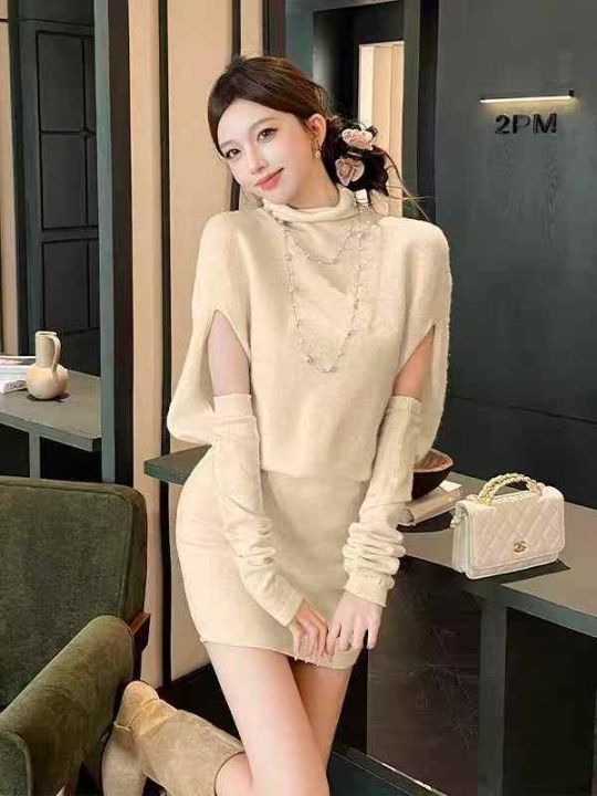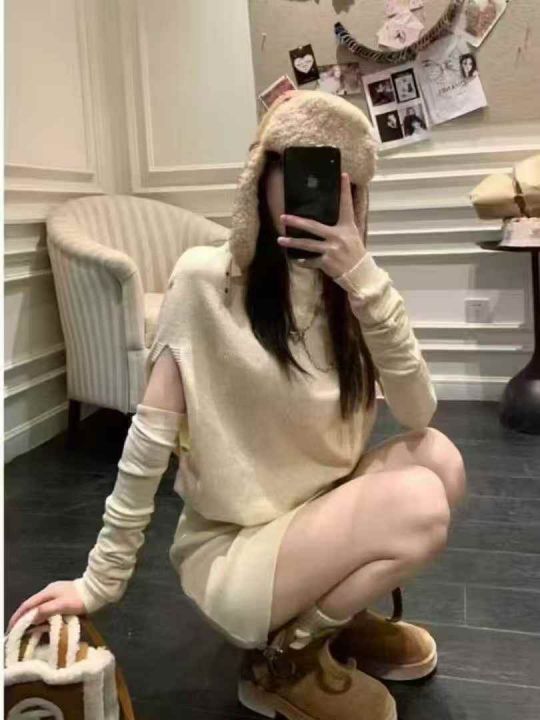 新款韩版可拆卸袖套连衣裙两件套3480套 面料厚实柔软 均码大弹力独立包装 大货杏色多 6.8清。 货号:1303