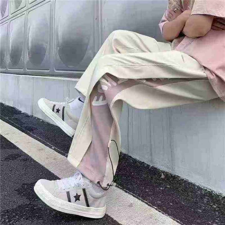️523条,港风休闲裤女2025夏季新款宽松阔腿裤薄款抽绳束脚拼接学生运动裤,独立包装,码数S-3XL,全清7.8元,分货➕0.5