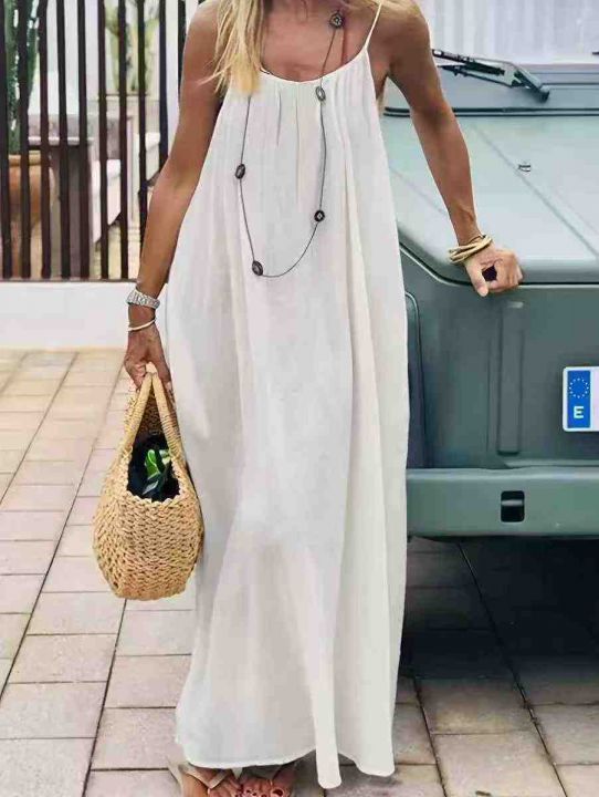 欧美跨境亚马逊吊带露背宽松长款连衣裙,数量 434 条,码数 S-XL。 整款两...