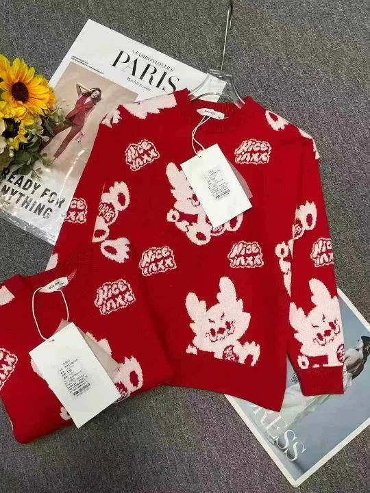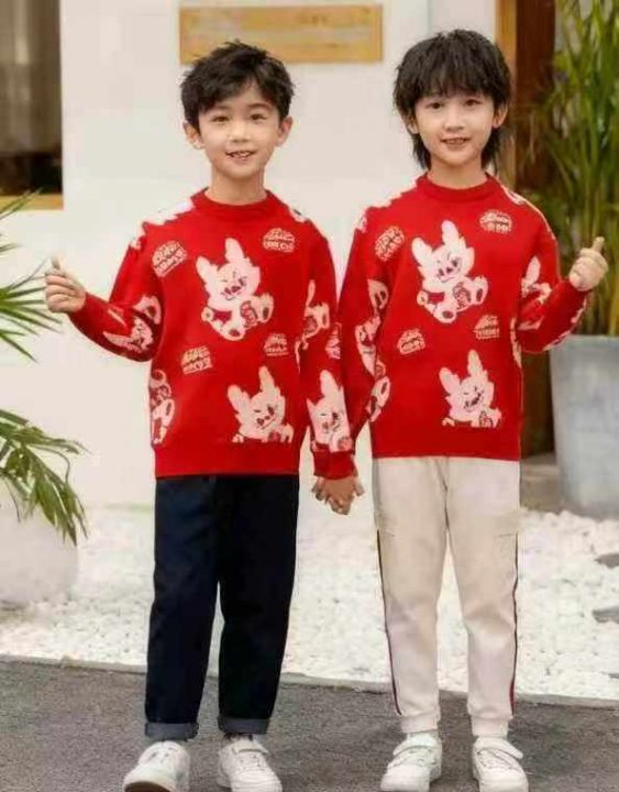 秋冬新款男女童中大童童装复古红色提花加厚包芯纱圆领套头毛衣,独立包装带吊牌,码数100-150码,1200件,全清6.9元超低价秒杀!分货加一!