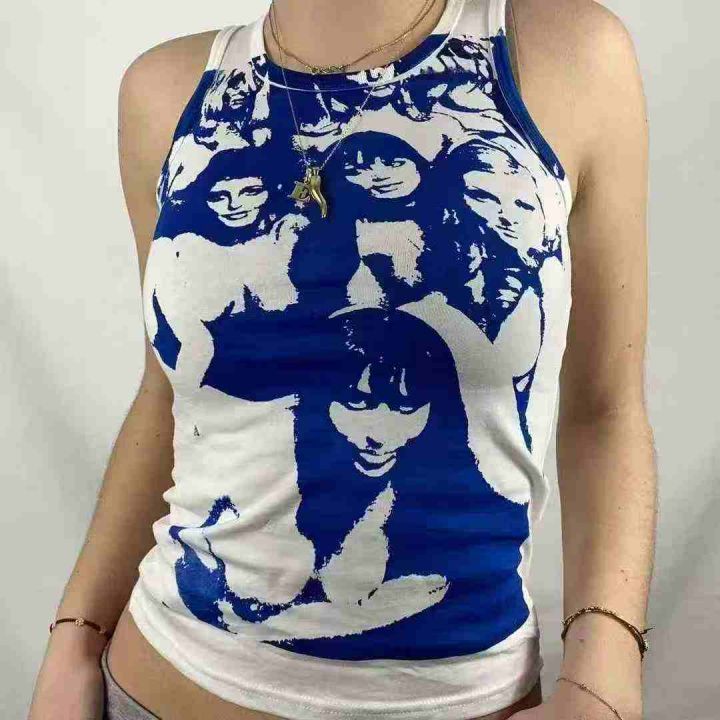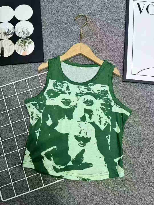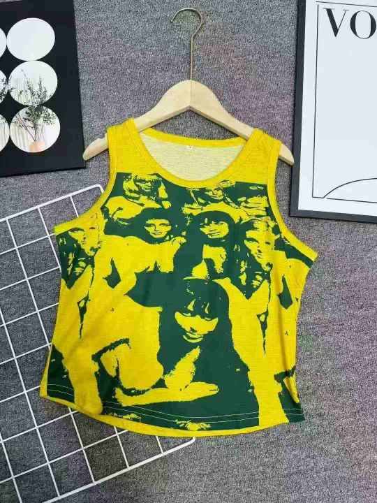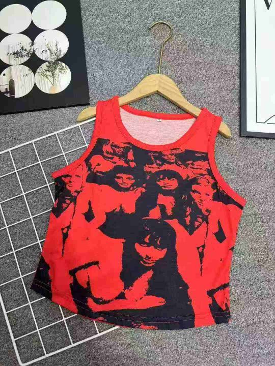 chic辣妹上衣 圆领修身短款复古撞色T恤 Y2K千禧风无袖印花背心夏,独立包装,码数XL-5XL,数量499件,全清3.8元,分货➕0.5
