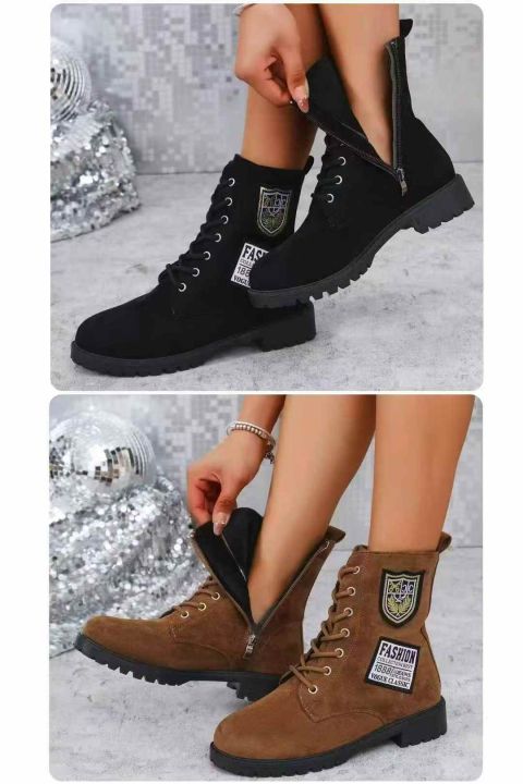 秋季新款马丁靴粗跟防滑女士休闲短筒靴低跟女鞋靴,数量 150 双,码数 36-44。 整款两色,今年新货品质好,独立包装。全清 12.8