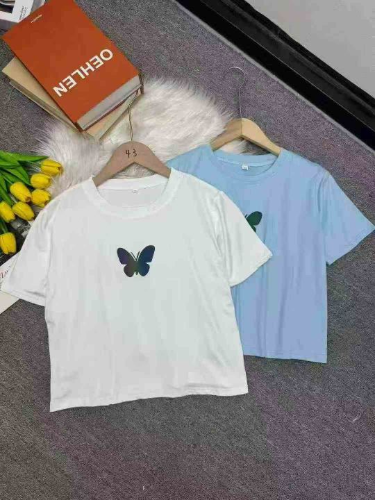 蝴蝶短袖T恤女短款露脐上衣设计感小众辣妹上衣,独立包装,码数1-4码,数量428件,分货加1,货号0912#35