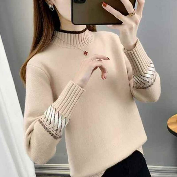 冬季新款高品质女装加绒(一体绒)加厚宽松半高领2条毛包芯纱套头毛衣,独...