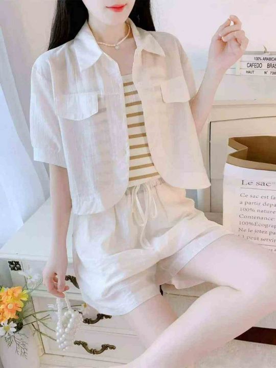 夏季新款小众不撞款网红炸街减龄短袖衬衫+短裤2件套,独立包装,码数M--2XL...