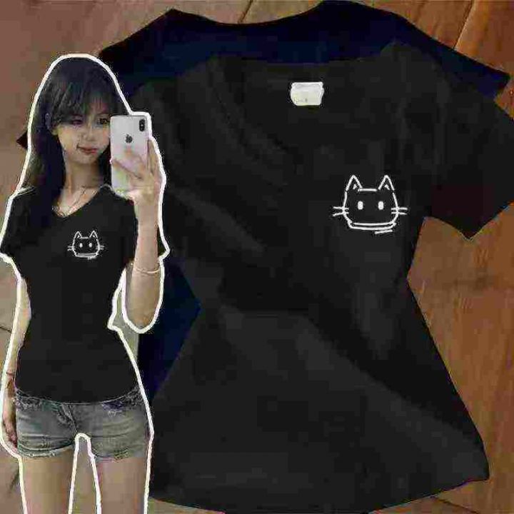 [月亮]:5.8清245件[月亮]:夏季正肩V领猫咪印花短袖T恤[月亮]:134码 独立...