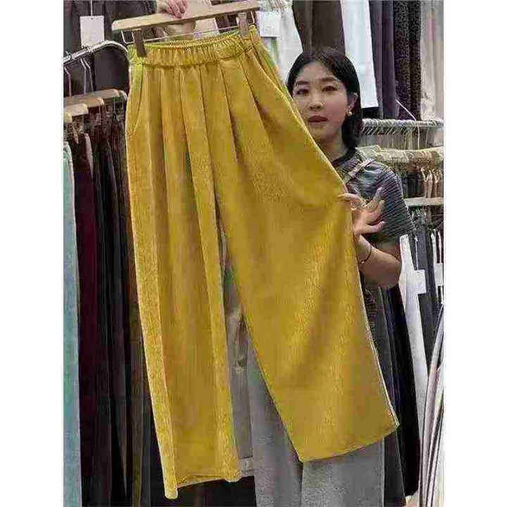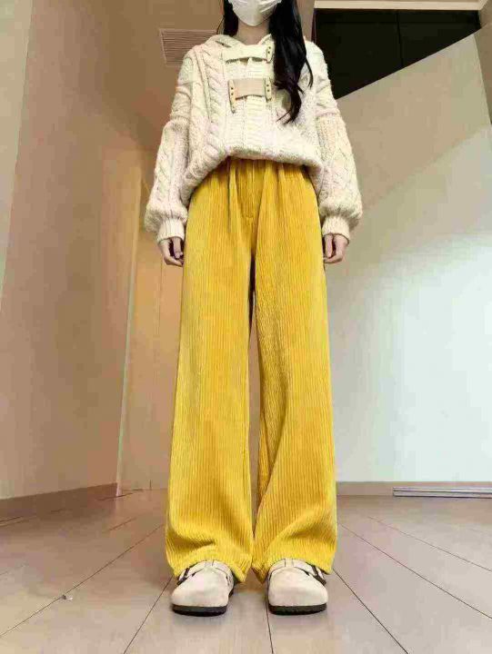 拉夏贝尔黄色复古灯芯绒休闲裤女冬季宽松高腰阔腿,数量120件,码数s-2xl,独立包装,全清5.5元