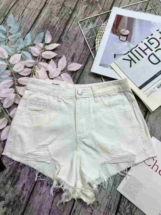 白色辣妹牛仔短裤☕️177条全清8.8元,码数S到XL,独立包装,拉夏贝尔白色破洞牛仔短裤女夏季新款高腰显瘦a字毛边热裤子