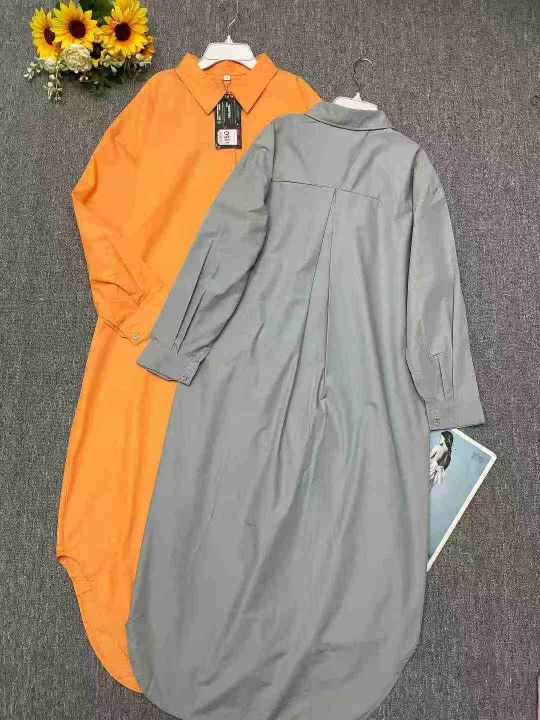 品牌外贸原单纯棉宽松大长款衬衣裙,独立包装带吊牌,...