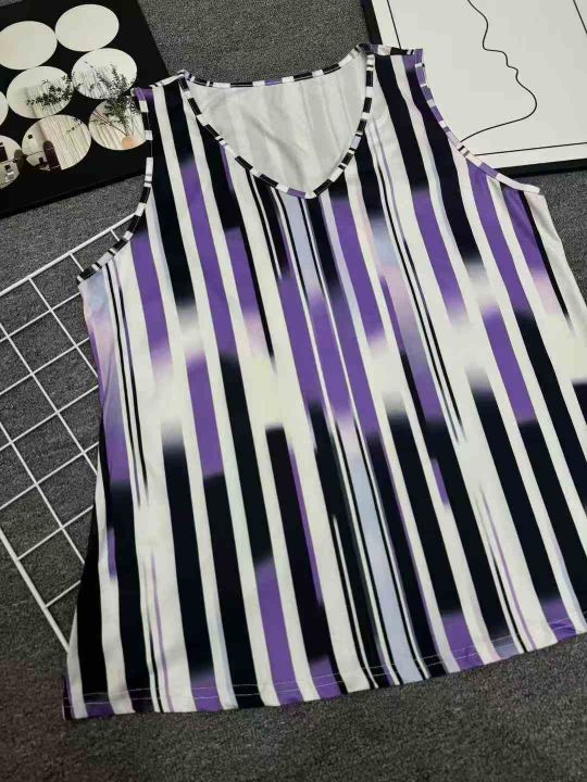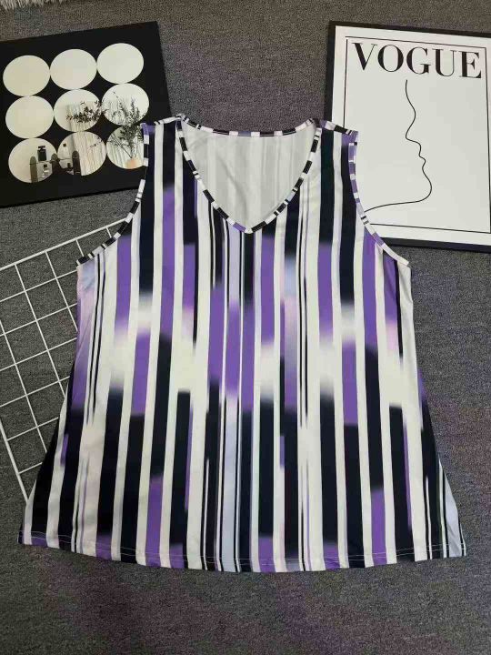 复古条纹背心吊带宽松显瘦V领宽松通勤夏季穿着舒适女士印花仙气,独立拉链包装,数量300左右,码数XL-5XL,全清3.5元