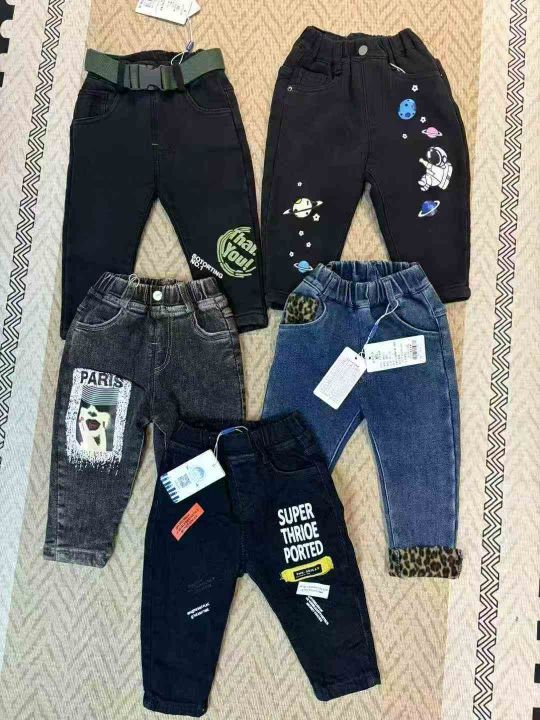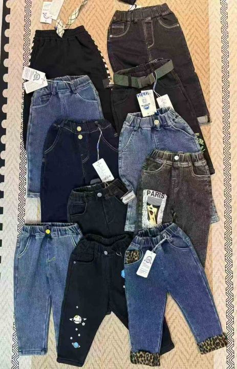200条左右童装杂款裤子!内里包边包条!百分之九十都是童装牛仔裤,有加绒有不加绒的,奥粒绒!质量超好,高弹力,图片款大同小异!全清5.5