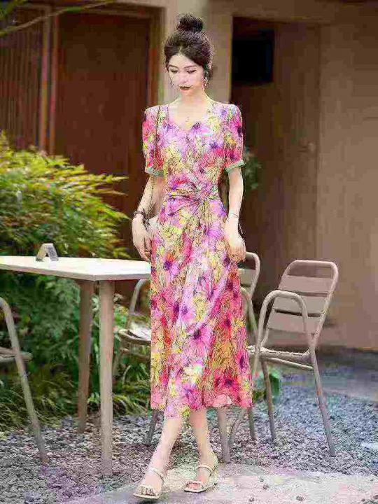 ☕️网红碎花连衣裙女夏季新款高端气质遮肚显瘦高级感...