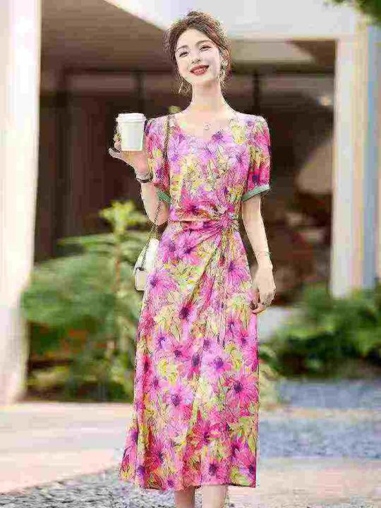 ☕️网红碎花连衣裙女夏季新款高端气质遮肚显瘦高级感长裙子120条全清13.8元,码数S到XL,独立包装。全部配腰带~