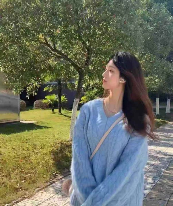 女韩版百搭慵懒风加厚V领宽松高级感麻花毛衣,70件,M...