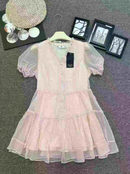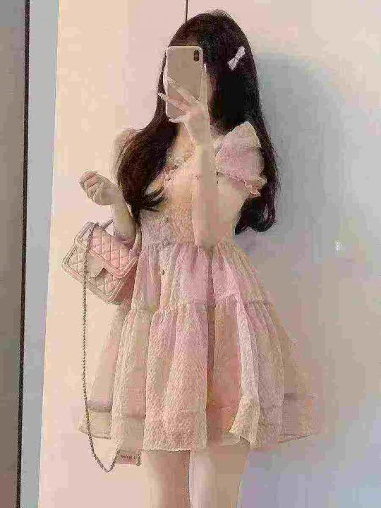 ☕️仙女连衣裙纯欲温柔风法式v领粉色女甜美连衣裙夏季裙子纯欲ins网纱裙100件全清13.8元,码数S到XL,2个整款粉色,独立包装,全部带有内衬~