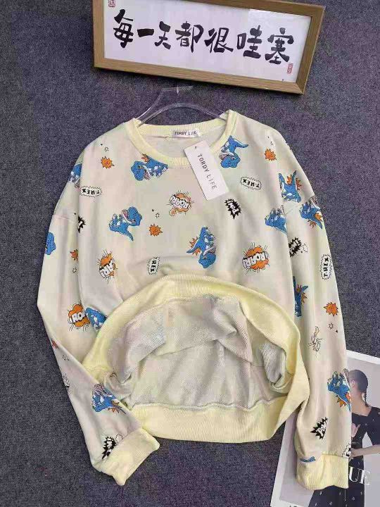棉质秋季宽松卫衣60件7.9,小恐龙印花,面料小毛圈,...