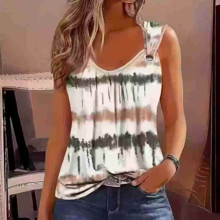 女士夏季休闲扎染印花无袖背心 , 数量140件,S-2XL码...