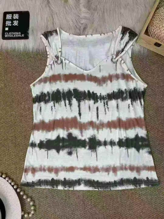 女士夏季休闲扎染印花无袖背心 , 数量140件,S-2XL码,独立拉链袋包装,单款三色,全清3.9秒杀。 货号:1303