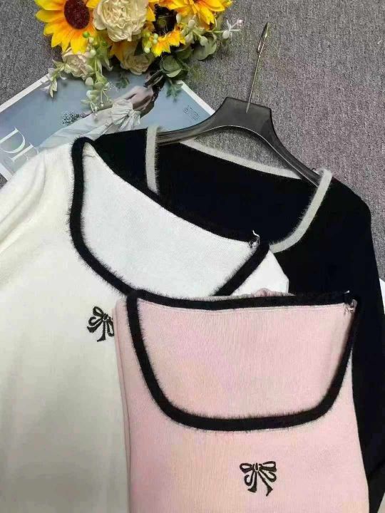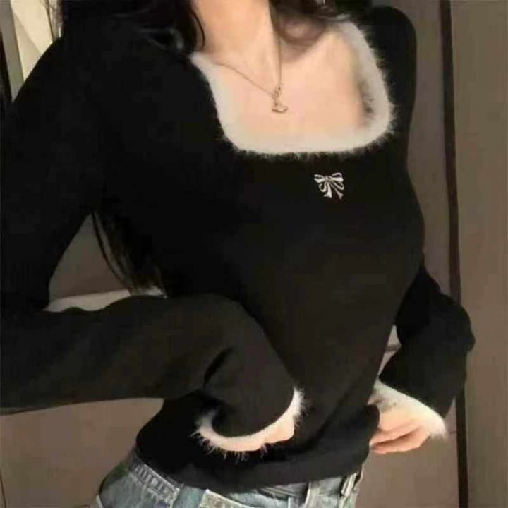 早秋新款小香风撞色刺绣减龄百搭拼接水貂毛设计款套头毛衣,独立包装,黑白色为主,均码面料软糯舒适弹力大,900件,全清6.9元超低价秒杀!分货加一!
