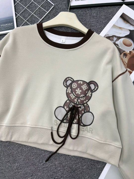 休闲减龄卡通短款圆领卫衣女新款秋冬韩版洋气外穿374...