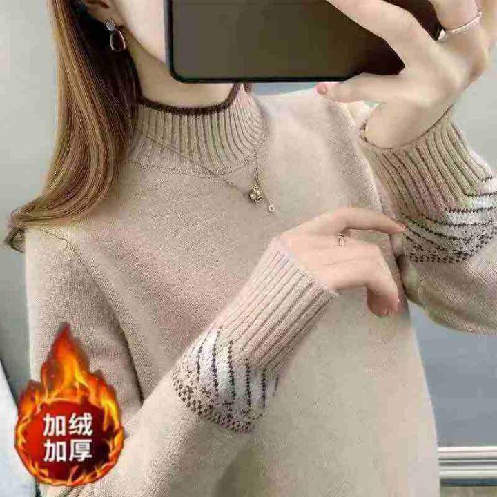 冬季新款高品质女装加绒(一体绒)加厚宽松半高领2条...