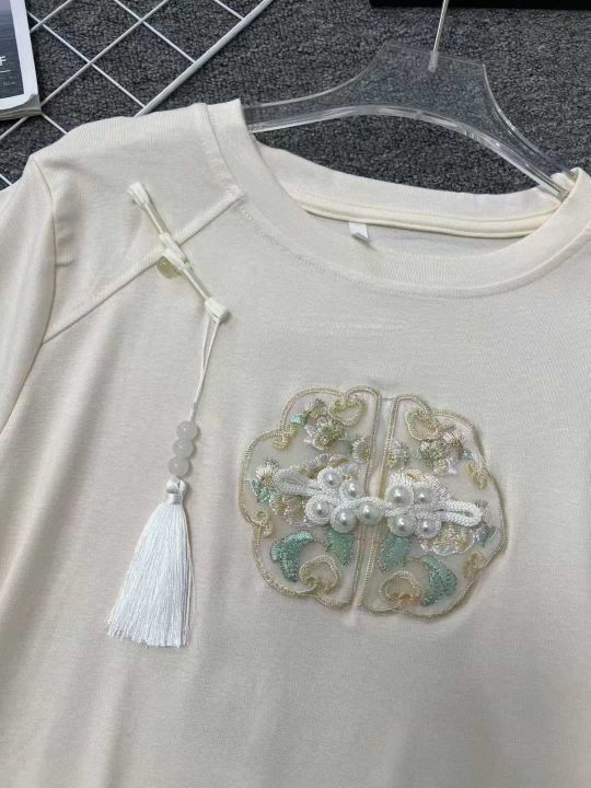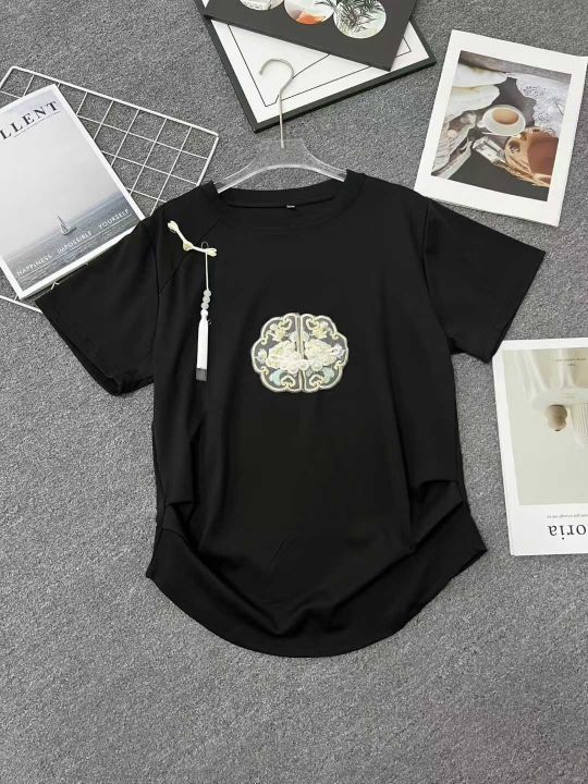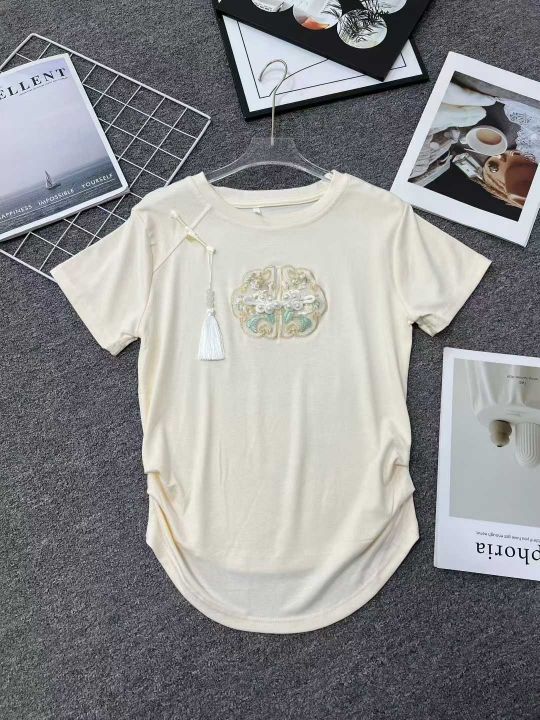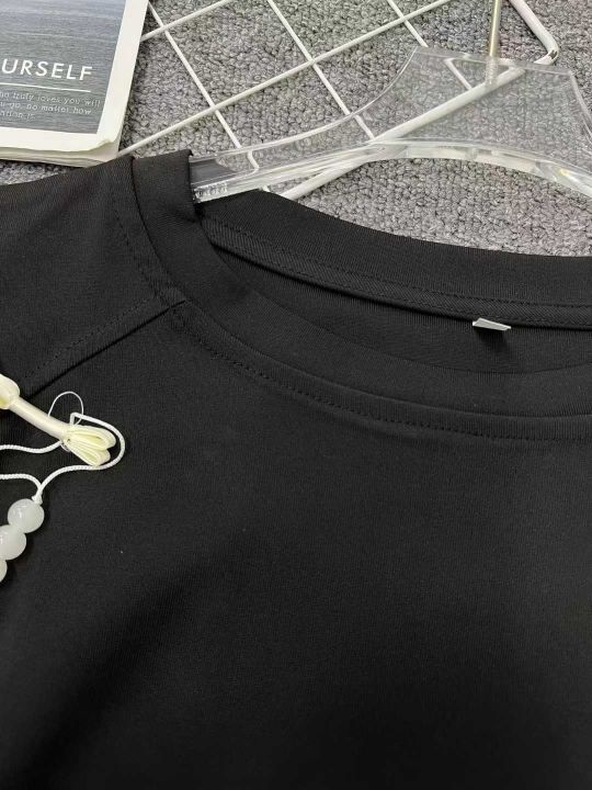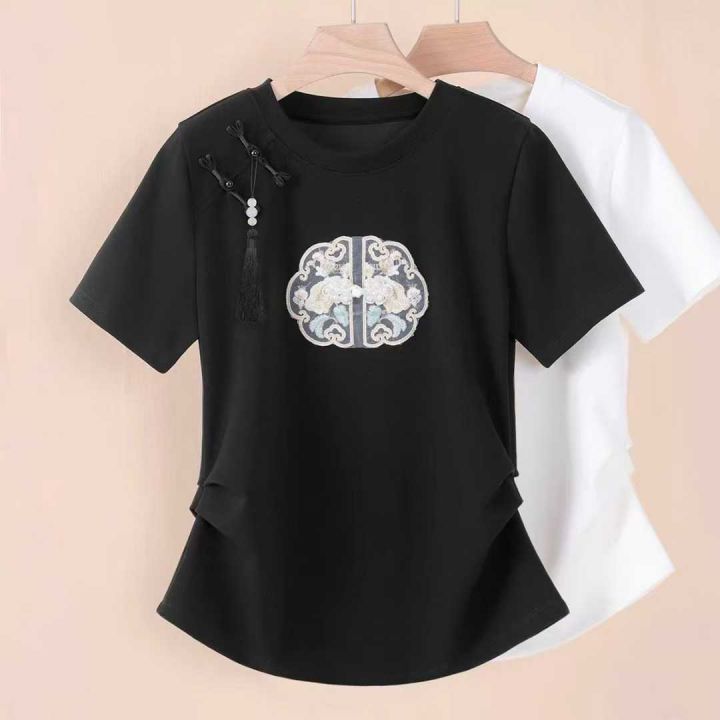 纯棉辣妹T国风刺绣别致盘扣正肩短袖t恤女新款夏季新中式独特气质上衣403件全清9.8元 分货+1元,S到XXL,单款2色,独立包装