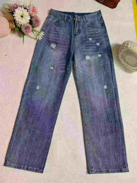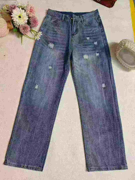 天猫下架男女同款水洗棉裂纹破洞复古牛仔裤,213件,...