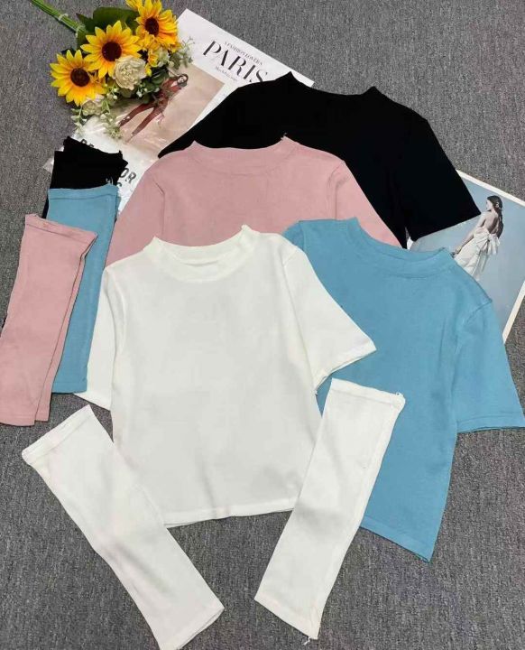 春夏新款辣妹设计感纯色可拆卸长短袖2穿针织套头毛衣,独立包装,单款多色...