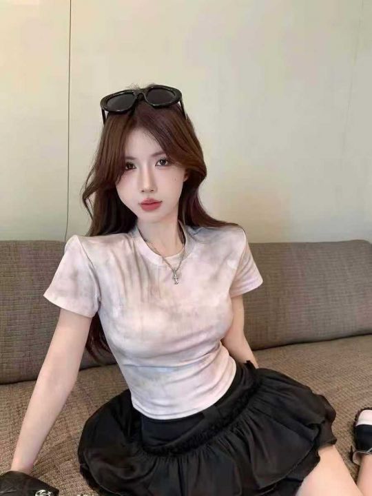 ☕️美式扎染辣妹T短袖t恤女夏季纯欲甜辣妹短款独特别...