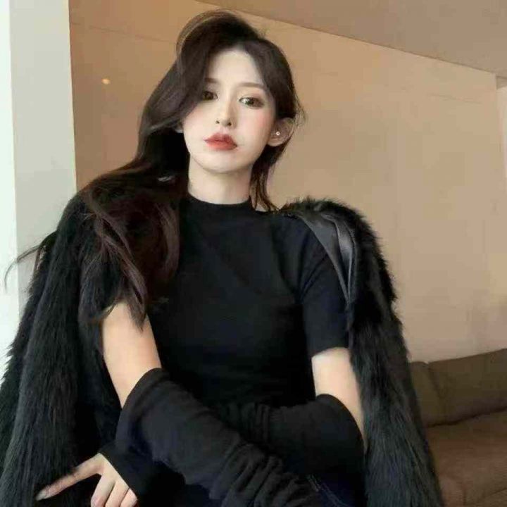 春夏新款辣妹设计感纯色可拆卸长短袖2穿针织套头毛衣...