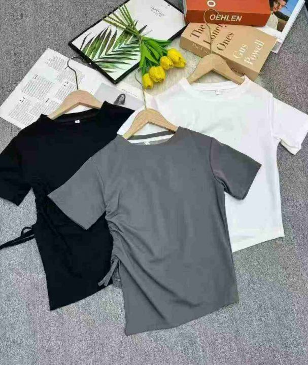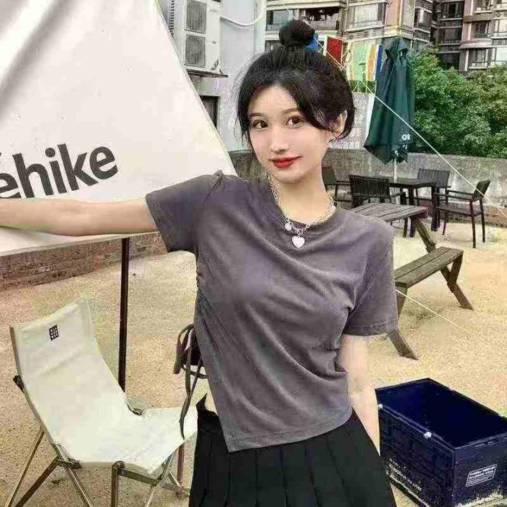 设计感小众不规则短袖抽绳短款百搭辣妹开叉纯色上衣,独立包装,码数1-3码,数量573件,货号0914#50