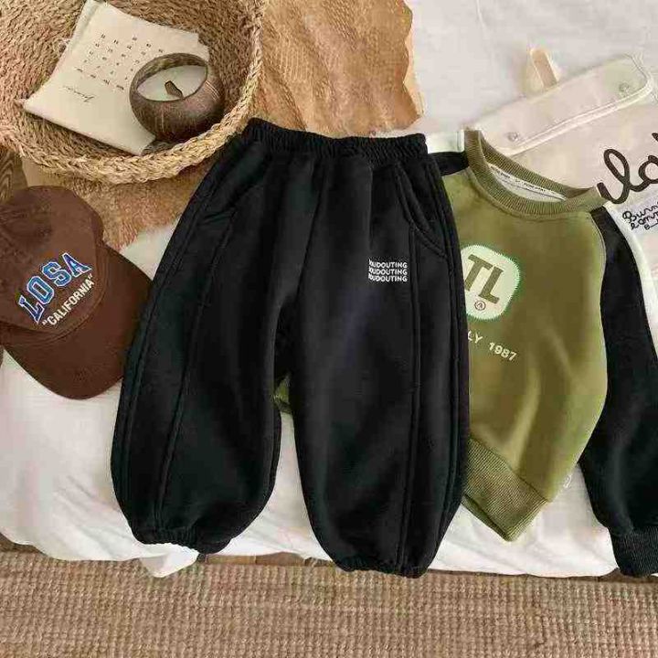 男童裤子春秋款2026新款秋装儿童运动卫裤潮牌童装字母植绒,码数3-8岁,独立包装带吊牌,数量1258件