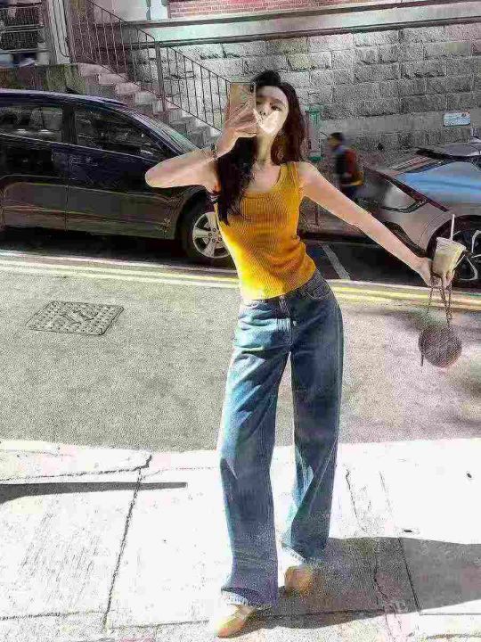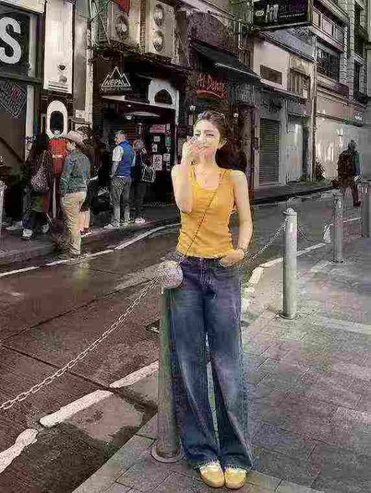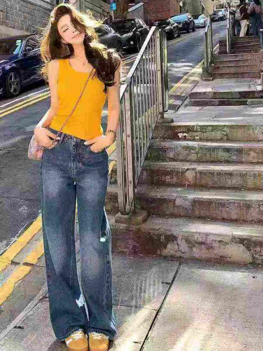 9.9清电商仓回收157件深蓝色高腰显瘦宽松阔腿牛仔裤,...