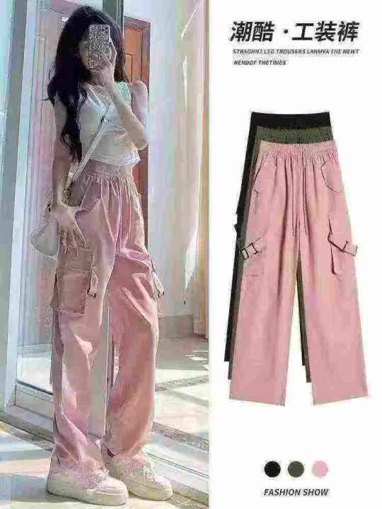 美式工装裤女春秋季新款高腰宽松显瘦百搭阔腿休闲裤,...
