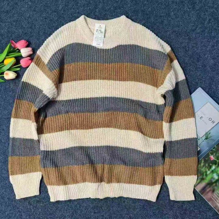秋冬季慵懒风情侣百搭条纹宽松圆领毛衣,男女同款,100件,M-2XL,独立包装吊牌,全清10.8元