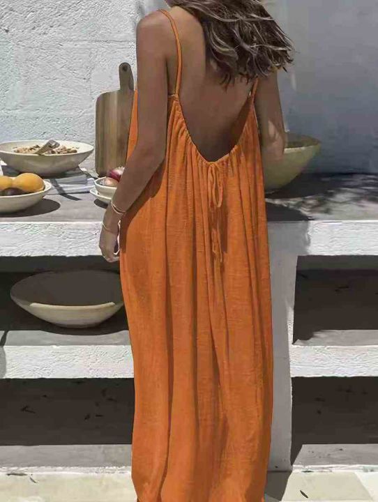 欧美跨境亚马逊吊带露背宽松长款连衣裙,数量 434 条...