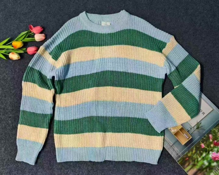 秋冬季慵懒风情侣百搭条纹宽松圆领毛衣,男女同款,100件,M-2XL,独立包装吊牌,全清10.8元。 货号:1303